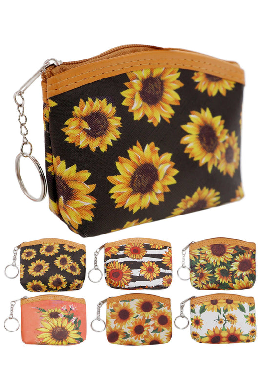 Sunflower Zippered Vegan PU Leather Coin Purse