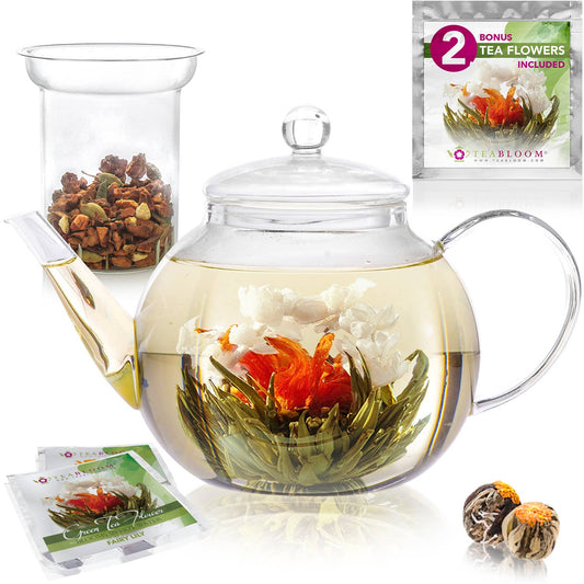 Teabloom Stovetop & Microwave Safe Glass Teapot