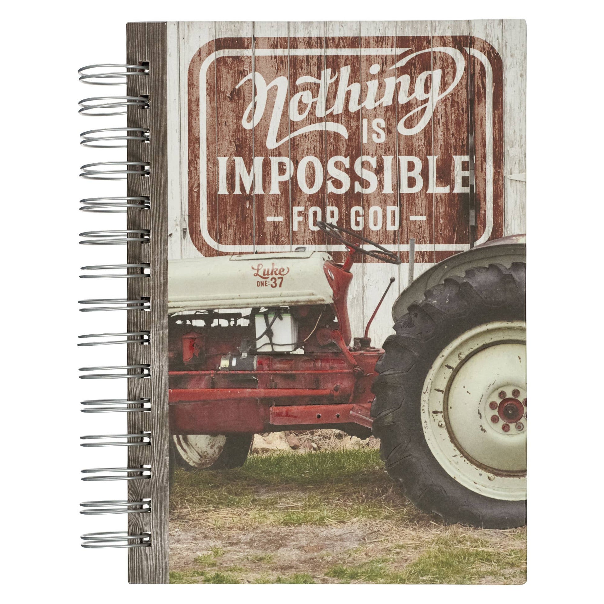 The Nothing is Impossible Red Tractor Wire-bound Journal blends nostalgia and faith to create a gift for a father or grandfather. The durable and practical wire-bound journal is perfect for daily reflections, and its design and sentiment will honor your loved one's heritage and faith journey. Pair with the matching key chain and gift bag for a complete gift.