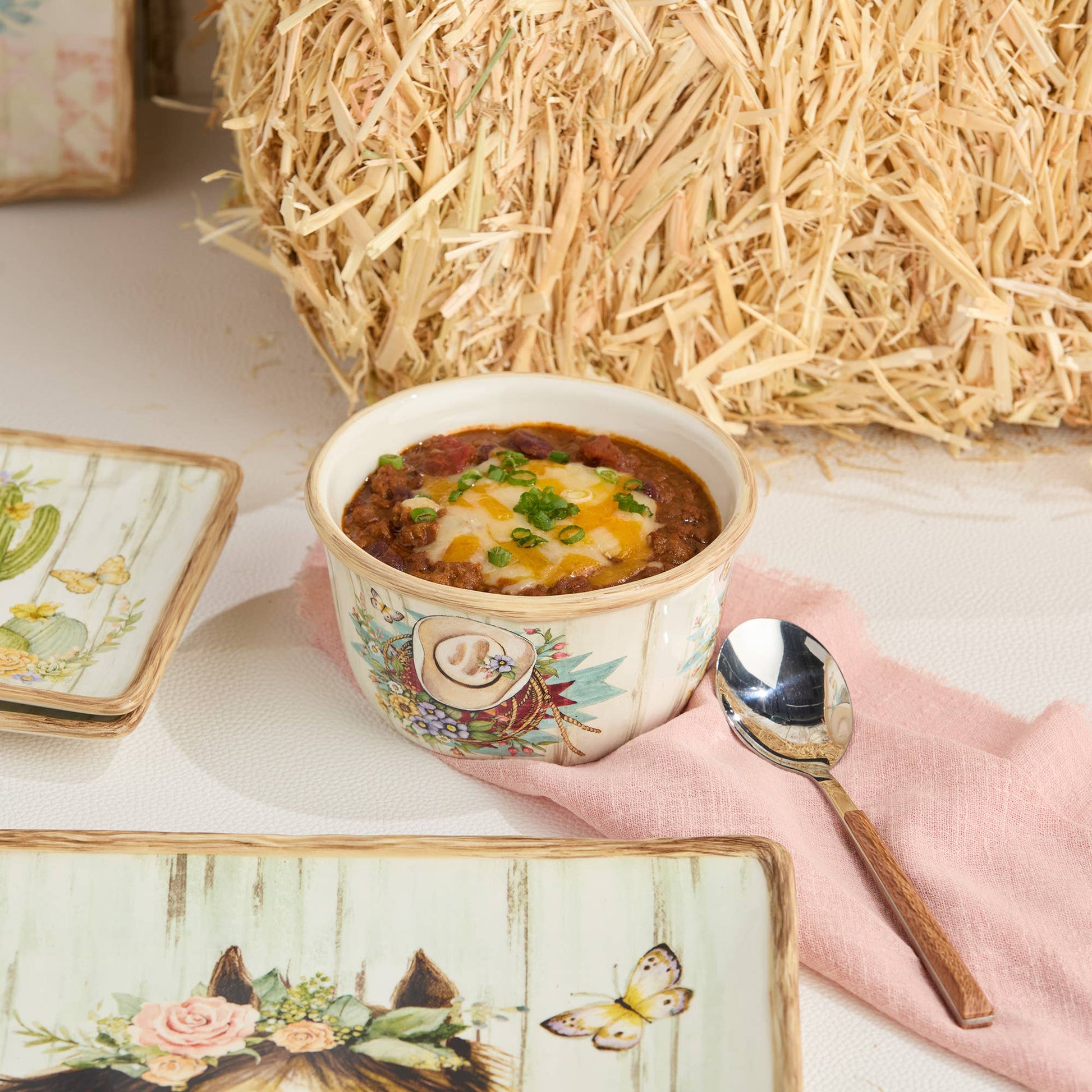 Bring a touch of rustic elegance to your dessert table with the Rosewood Ranch Ice Cream Bowl Set, a delightful collection of four unique designs that celebrate country living. Each 5.25" x 3" bowl features charming artwork, including a floral bouquet in cowboy boots, a Highland cow adorned with roses, a cowboy hat with a lasso surrounded by flowers, and a Southwestern-inspired steer skull. Perfectly sized for serving ice cream, sorbet, or yogurt, these bowls are versatile enough for side dishes like dips, sauces, or small salads. The durable construction and dishwasher-safe finish ensure effortless maintenance, making them ideal for both casual family meals and special occasions. Whether you're hosting a backyard barbecue or a cozy dinner party, these bowls add personality to your table setting. Their unique designs make them a conversation starter, and they pair beautifully with other items in the Rosewood Ranch collection.