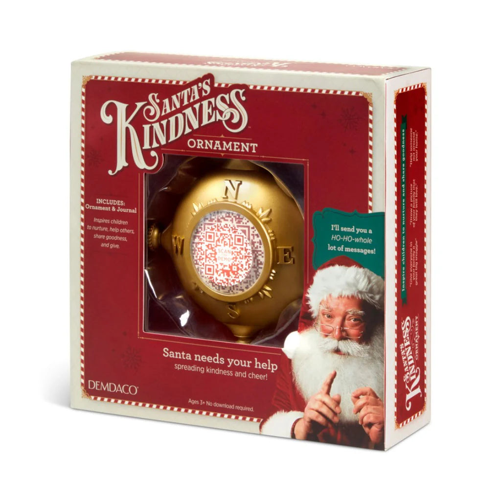 This Santa's Kindness Ornament & Journal set will inspire your child to spread kindness to others. Your child can receive messages (starting December 1) from Santa as you countdown the days until Christmas. Scan the QR code several times a day with a smart phone or tablet to reveal messages from Santa. Santa will encourage them to help him share kindness and guide them to draw and play games in the included journal. The ornament lights up when a tree light is inserted in the back of the ornament.