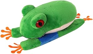 - Ready to hop into fun-filled play, this red-eyed tree frog animal plush is a colorful addition to toddler toy collections.
