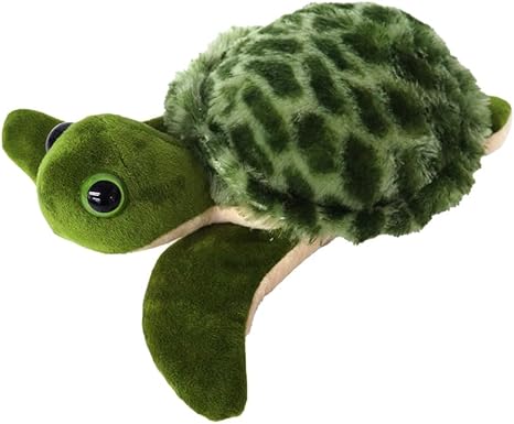 - This realistic stuffed animal sea turtle features a soft green spotted shell, a bulging head and big eyes begging for play.
